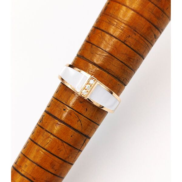 Bague Clozeau ISIS en or rose, résine blanche et diamants
