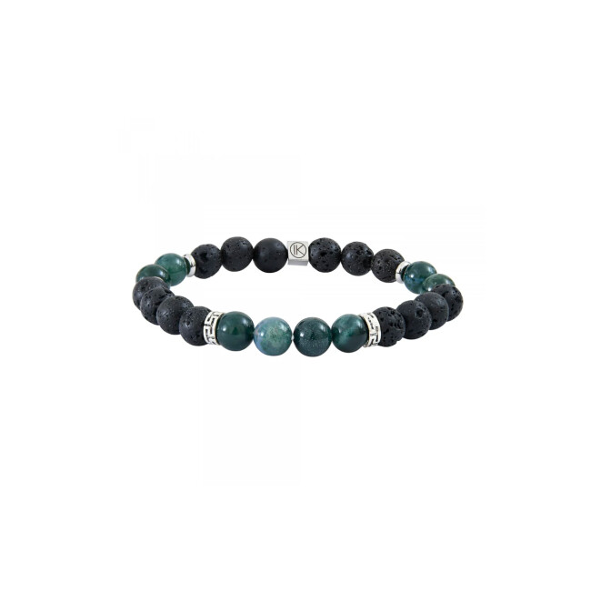 Bracelet IKOBA en Agate mousse et Pierre de lave 8mm
