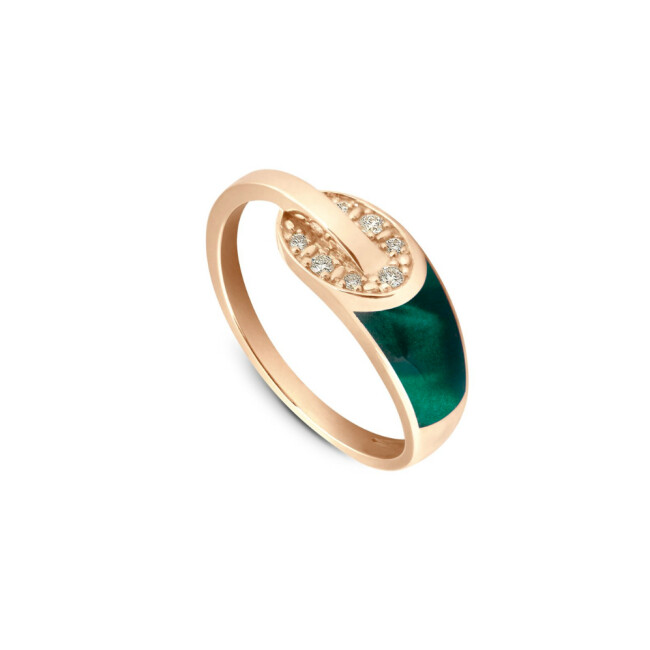 Bague Clozeau Lien en or rose, résine vert bronze et diamants