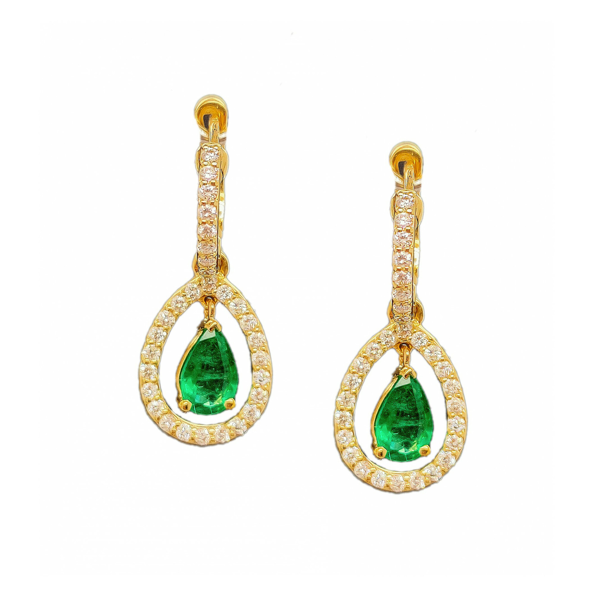 Boucles d'Oreilles avec Emeraudes et diamants